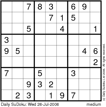 The Daily SuDoku: Wed 26-Jul-2006