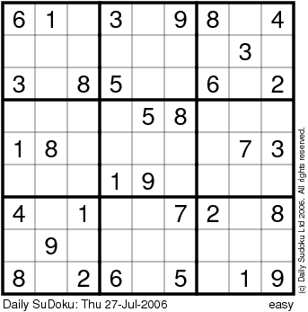 The Daily SuDoku: Thu 27-Jul-2006