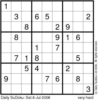 The Daily SuDoku: Sat 8-Jul-2006