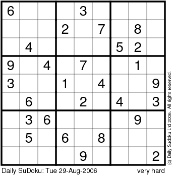 The Daily SuDoku: Tue 29-Aug-2006