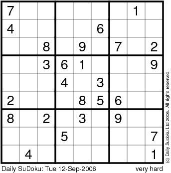 The Daily SuDoku: Tue 12-Sep-2006