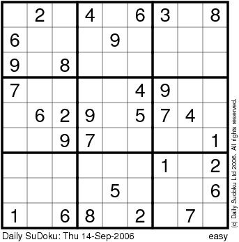 The Daily SuDoku: Thu 14-Sep-2006