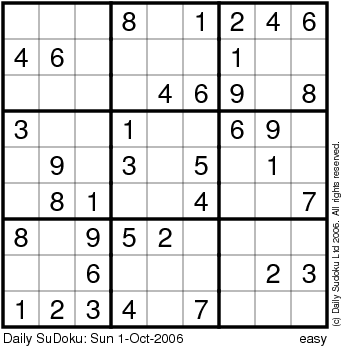 The Daily SuDoku: Sun 1-Oct-2006