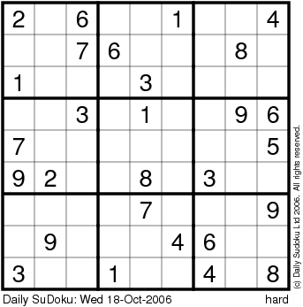 The Daily SuDoku: Wed 18-Oct-2006