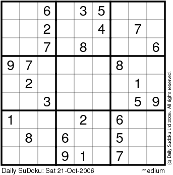 The Daily SuDoku: Sat 21-Oct-2006