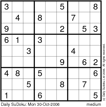The Daily SuDoku: Mon 30-Oct-2006