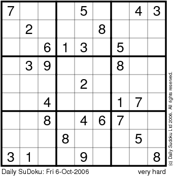 The Daily SuDoku: Fri 6-Oct-2006