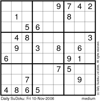 The Daily SuDoku: Fri 10-Nov-2006
