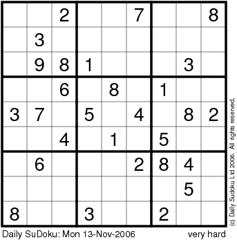 The Daily SuDoku: Mon 13-Nov-2006