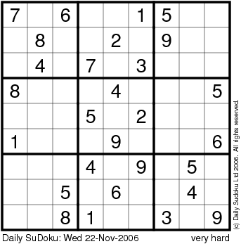 The Daily SuDoku: Wed 22-Nov-2006