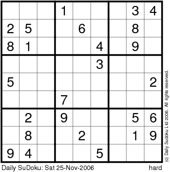 The Daily SuDoku: Sat 25-Nov-2006