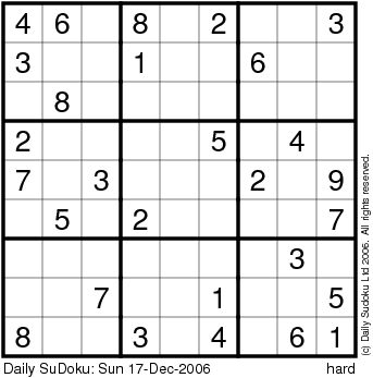 The Daily SuDoku: Sun 17-Dec-2006