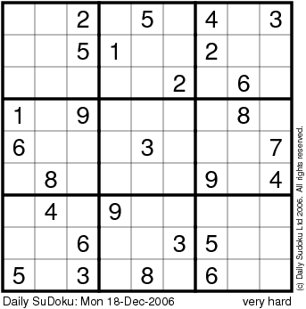 The Daily SuDoku: Mon 18-Dec-2006