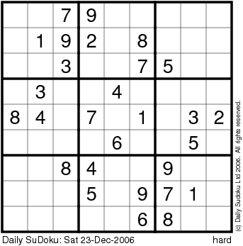 The Daily SuDoku: Sat 23-Dec-2006