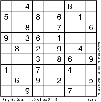 The Daily SuDoku: Thu 28-Dec-2006