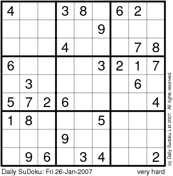 The Daily SuDoku: Fri 26-Jan-2007