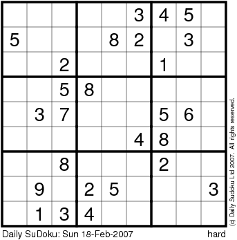 The Daily SuDoku: Sun 18-Feb-2007