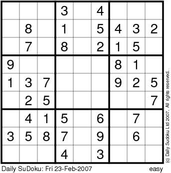 The Daily SuDoku: Fri 23-Feb-2007