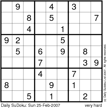 The Daily SuDoku: Sun 25-Feb-2007