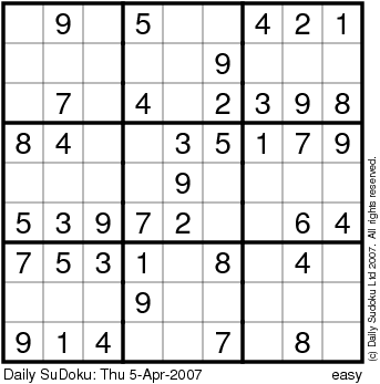 The Daily SuDoku: Thu 5-Apr-2007