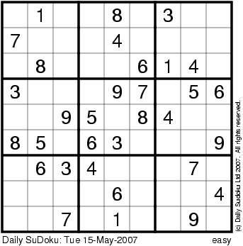 The Daily SuDoku: Tue 15-May-2007