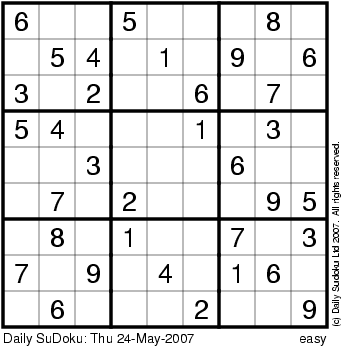 The Daily SuDoku: Thu 24-May-2007