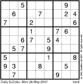 The Daily SuDoku: Mon 28-May-2007
