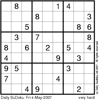 The Daily SuDoku: Fri 4-May-2007