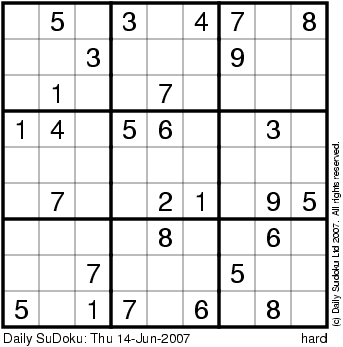 The Daily SuDoku: Thu 14-Jun-2007