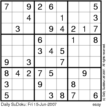 The Daily SuDoku: Fri 15-Jun-2007