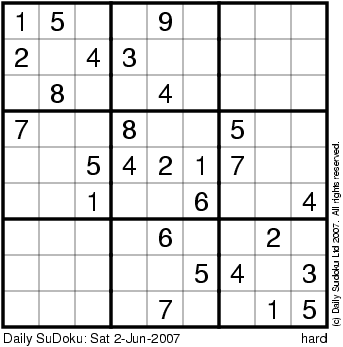 The Daily SuDoku: Sat 2-Jun-2007