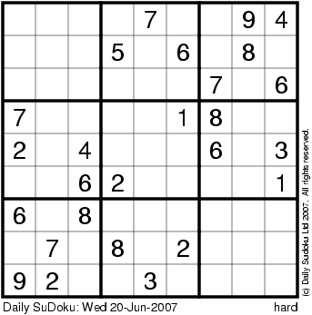 The Daily SuDoku: Wed 20-Jun-2007