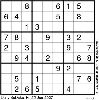 The Daily SuDoku: Fri 22-Jun-2007