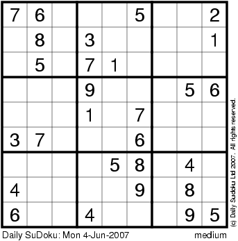 The Daily SuDoku: Mon 4-Jun-2007