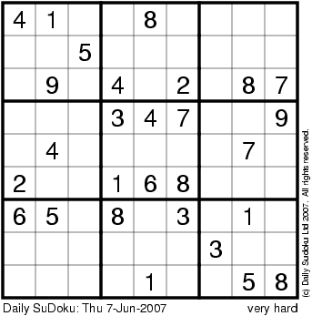The Daily SuDoku: Thu 7-Jun-2007