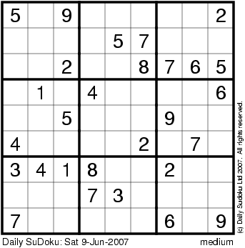 The Daily SuDoku: Sat 9-Jun-2007