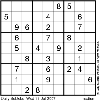 The Daily SuDoku: Wed 11-Jul-2007