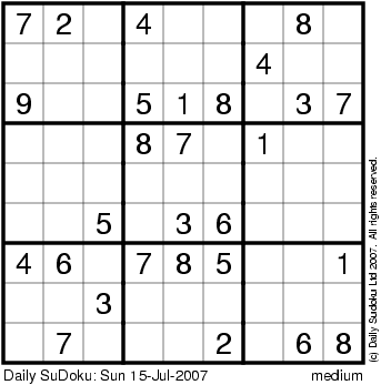 The Daily SuDoku: Sun 15-Jul-2007