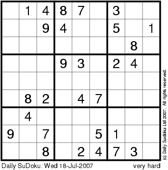 The Daily SuDoku: Wed 18-Jul-2007