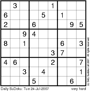 The Daily SuDoku: Tue 24-Jul-2007