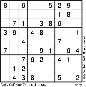 The Daily SuDoku: Thu 26-Jul-2007