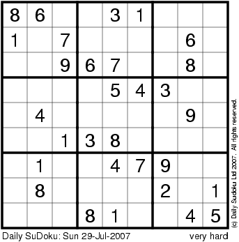 The Daily SuDoku: Sun 29-Jul-2007
