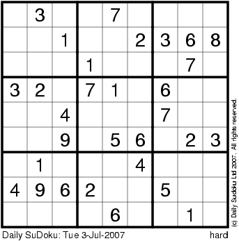 The Daily SuDoku: Tue 3-Jul-2007