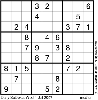 The Daily SuDoku: Wed 4-Jul-2007