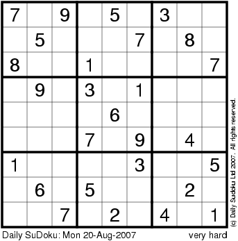 The Daily SuDoku: Mon 20-Aug-2007
