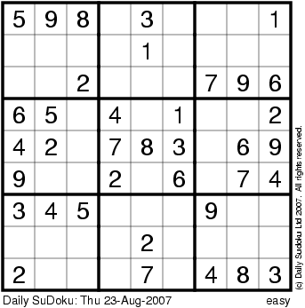 The Daily SuDoku: Thu 23-Aug-2007