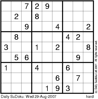The Daily SuDoku: Wed 29-Aug-2007