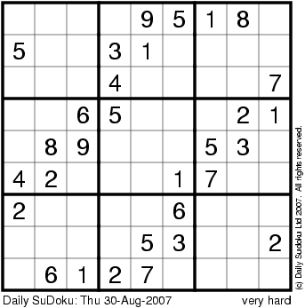 The Daily SuDoku: Thu 30-Aug-2007