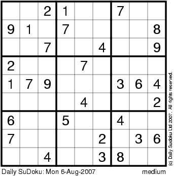 The Daily SuDoku: Mon 6-Aug-2007