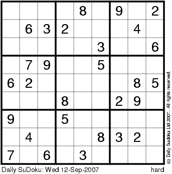 The Daily SuDoku: Wed 12-Sep-2007